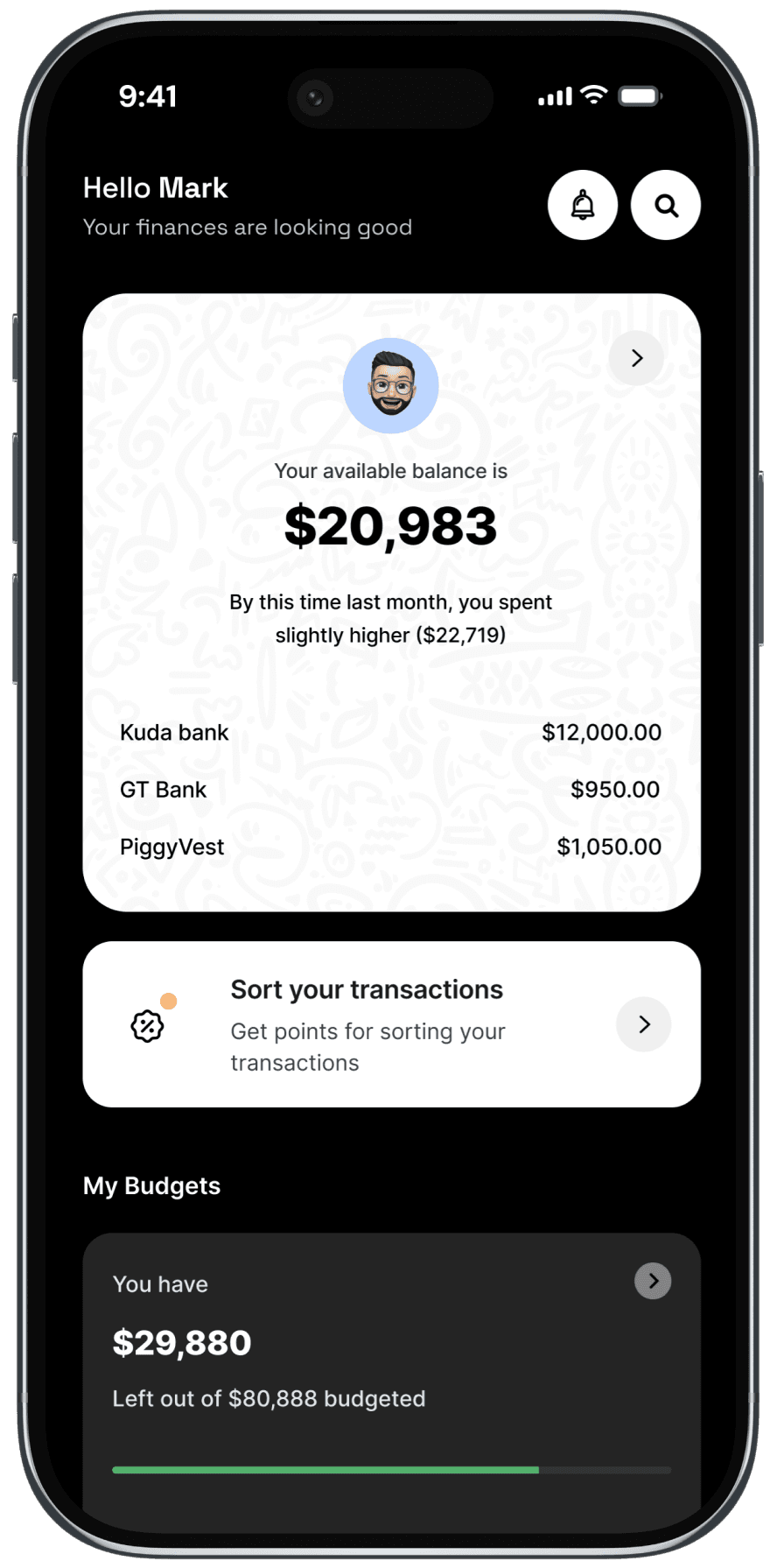Track spending, savings, and income in one clean dashboard — giving you instant clarity and confidence about your finances.